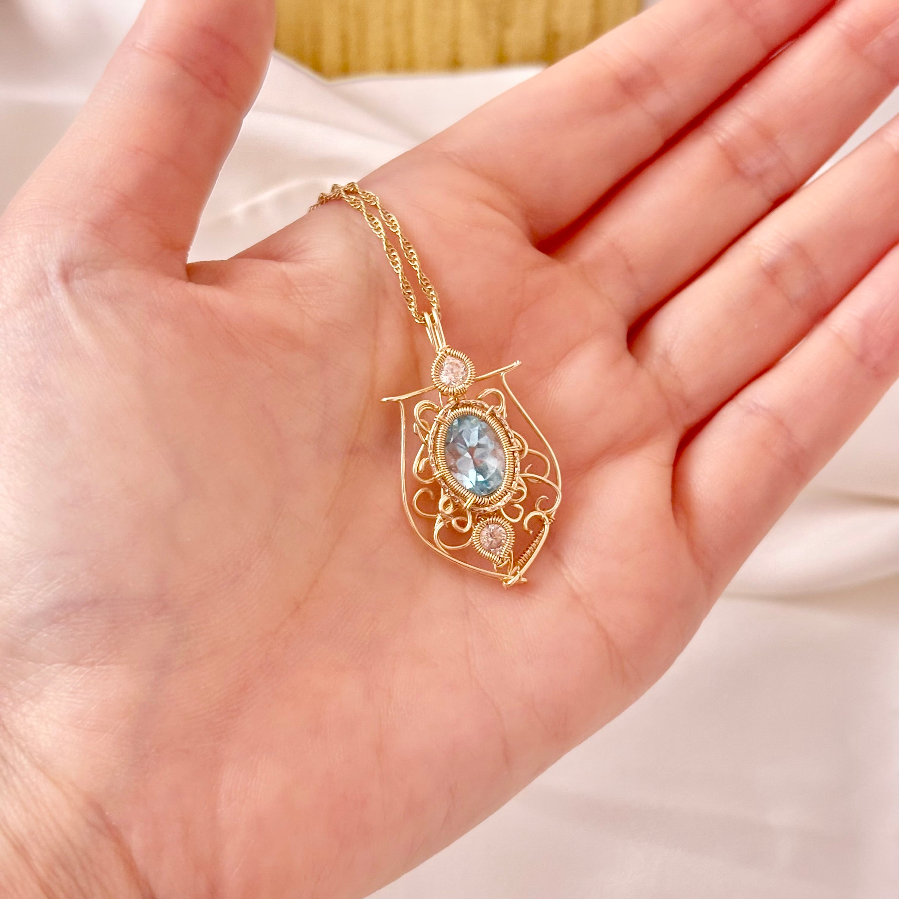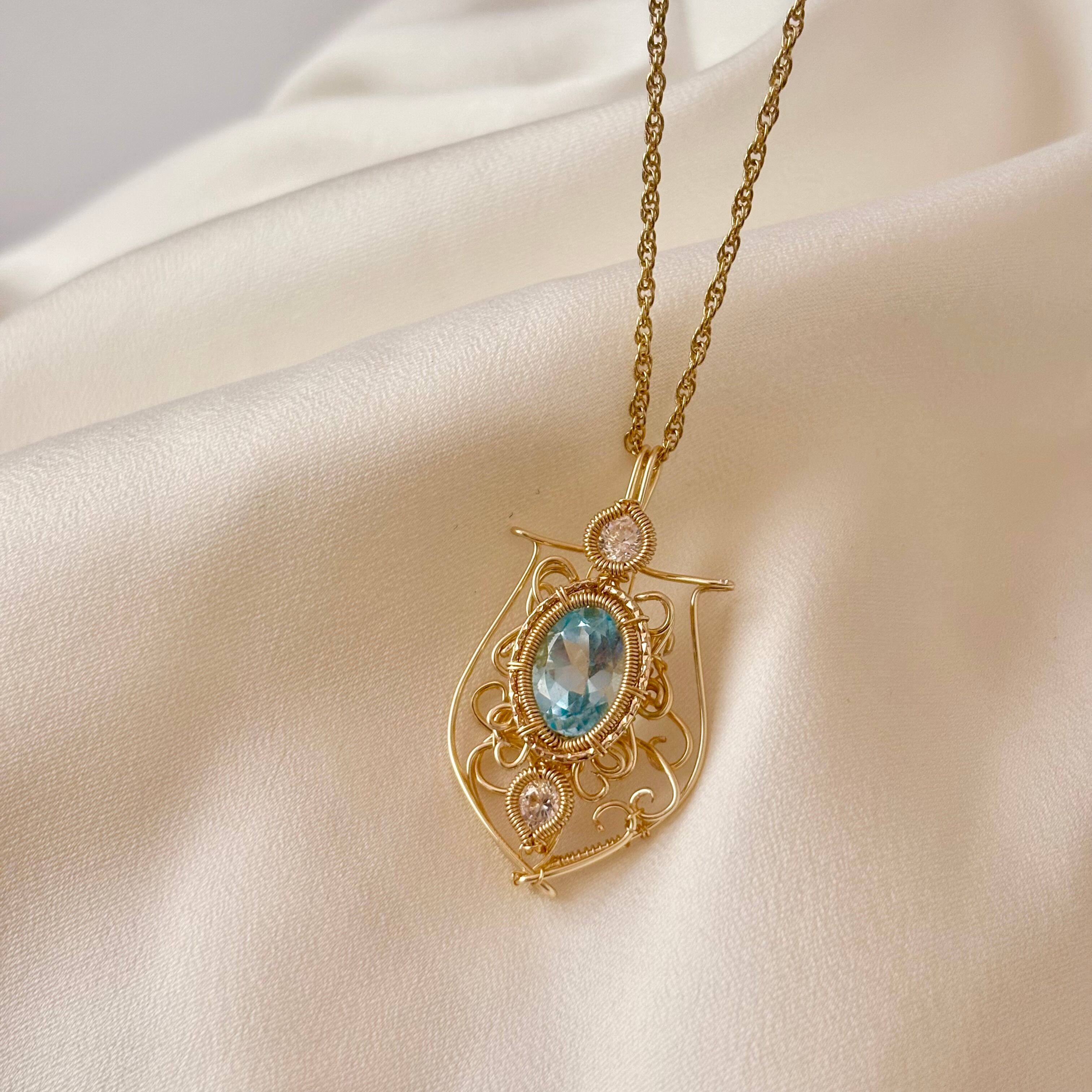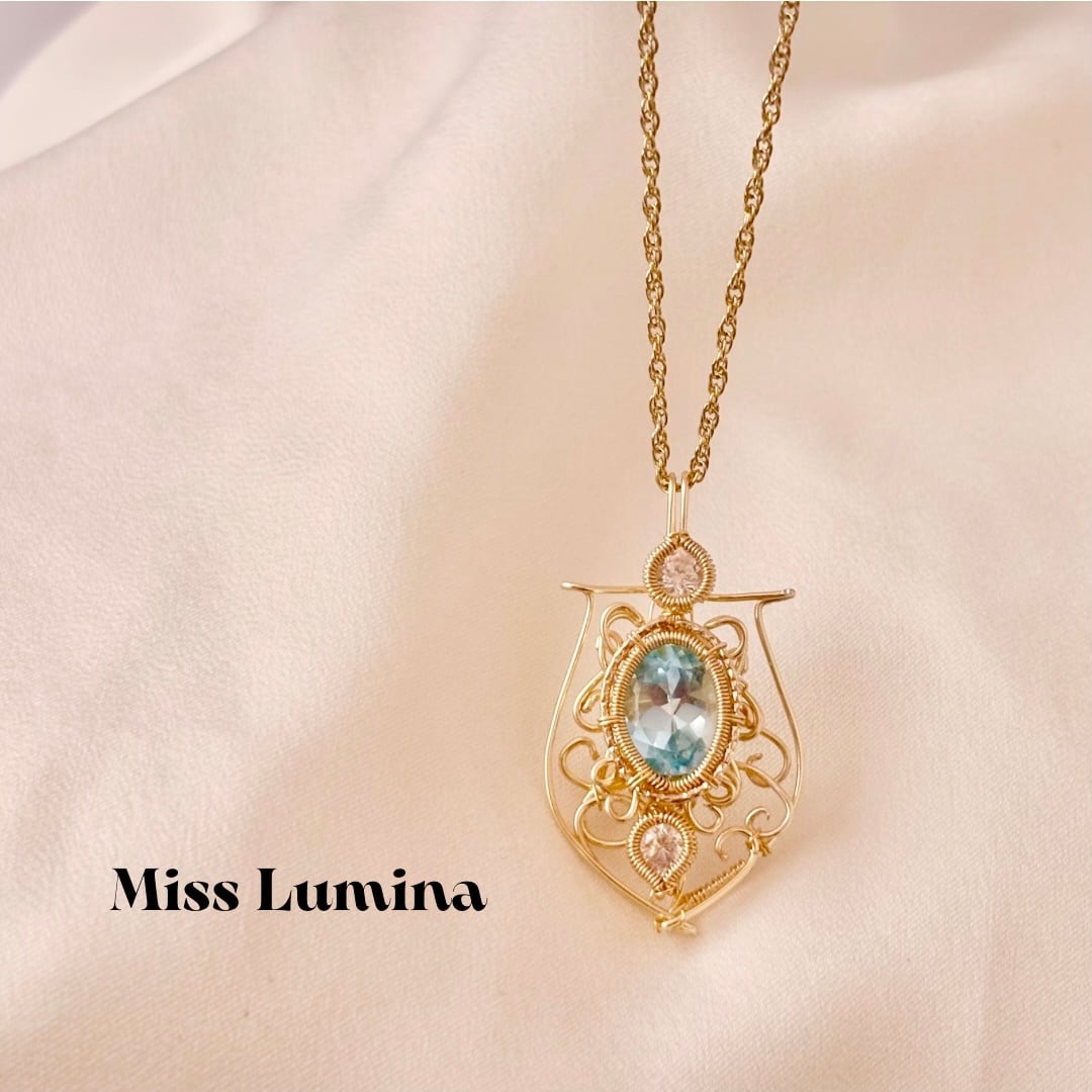 アクアマリン(天然石)、スワロフスキークリスタル、ゴールドカラーワイヤー