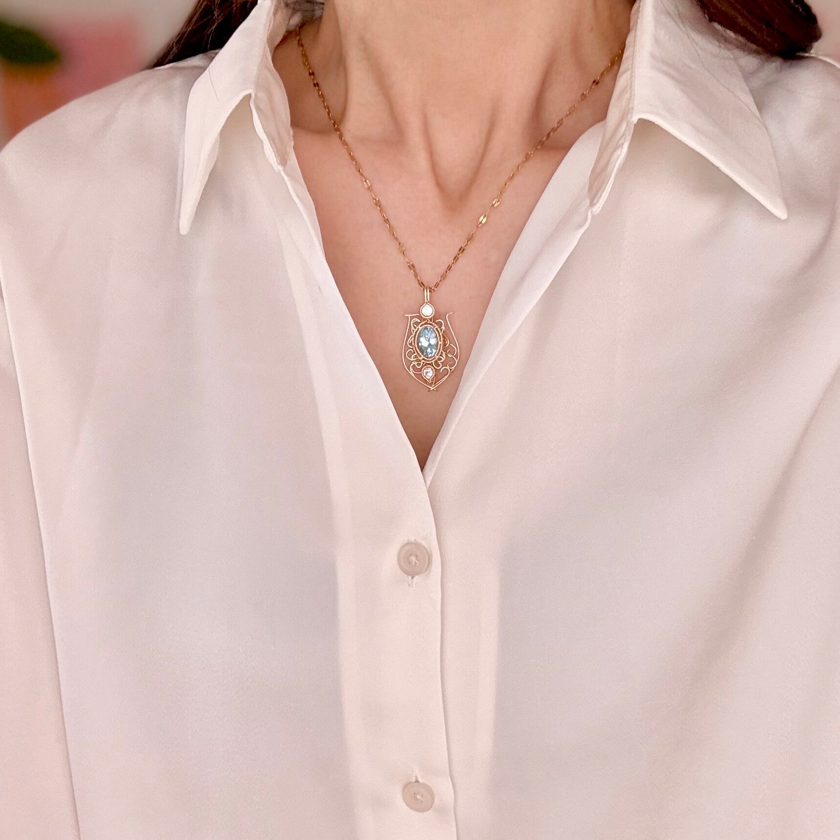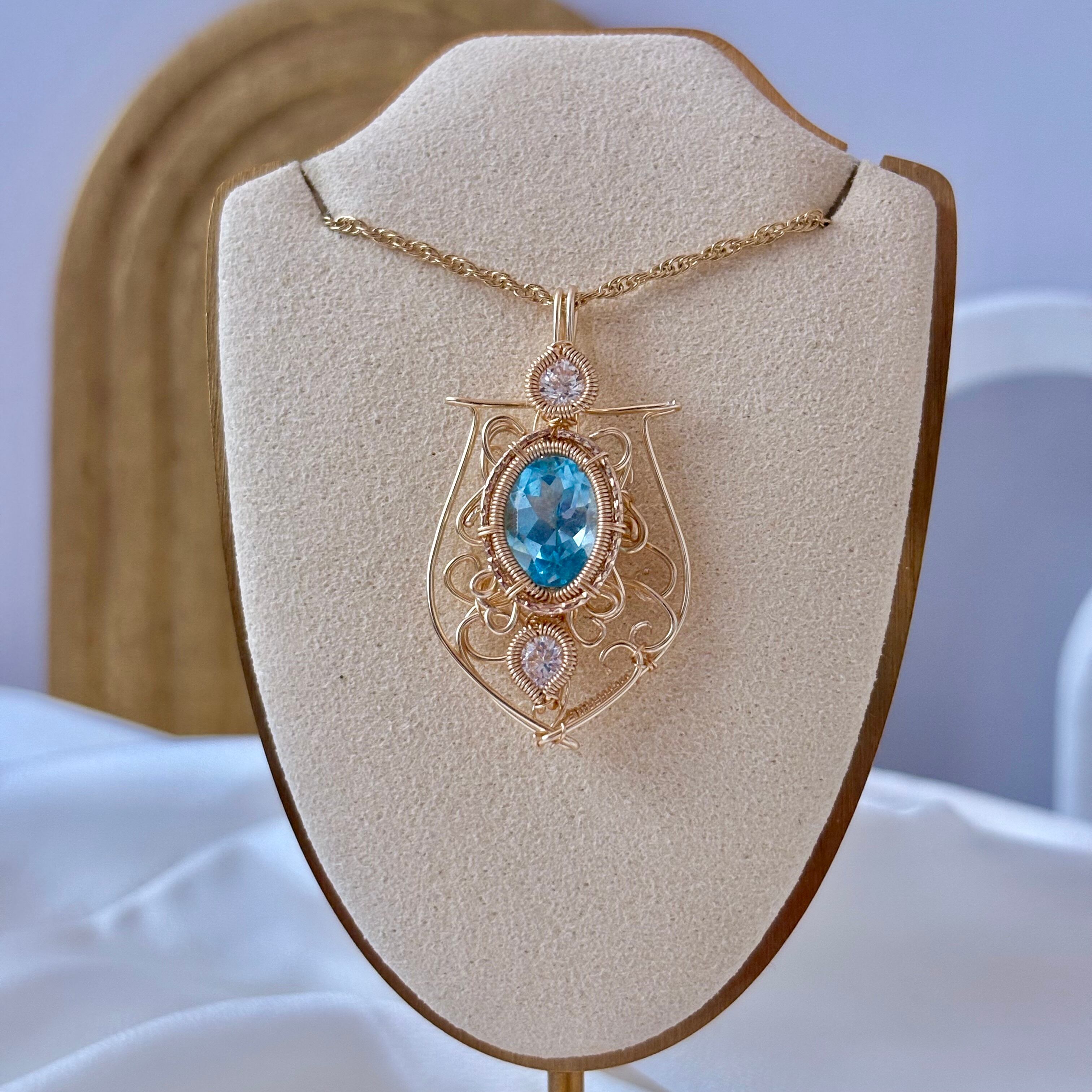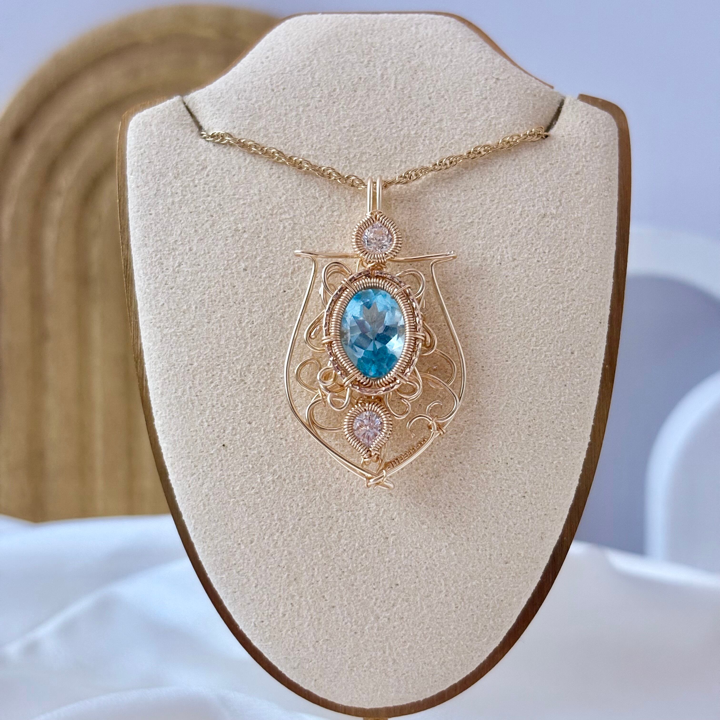アクアマリン(天然石)、スワロフスキークリスタル、ゴールドカラーワイヤー