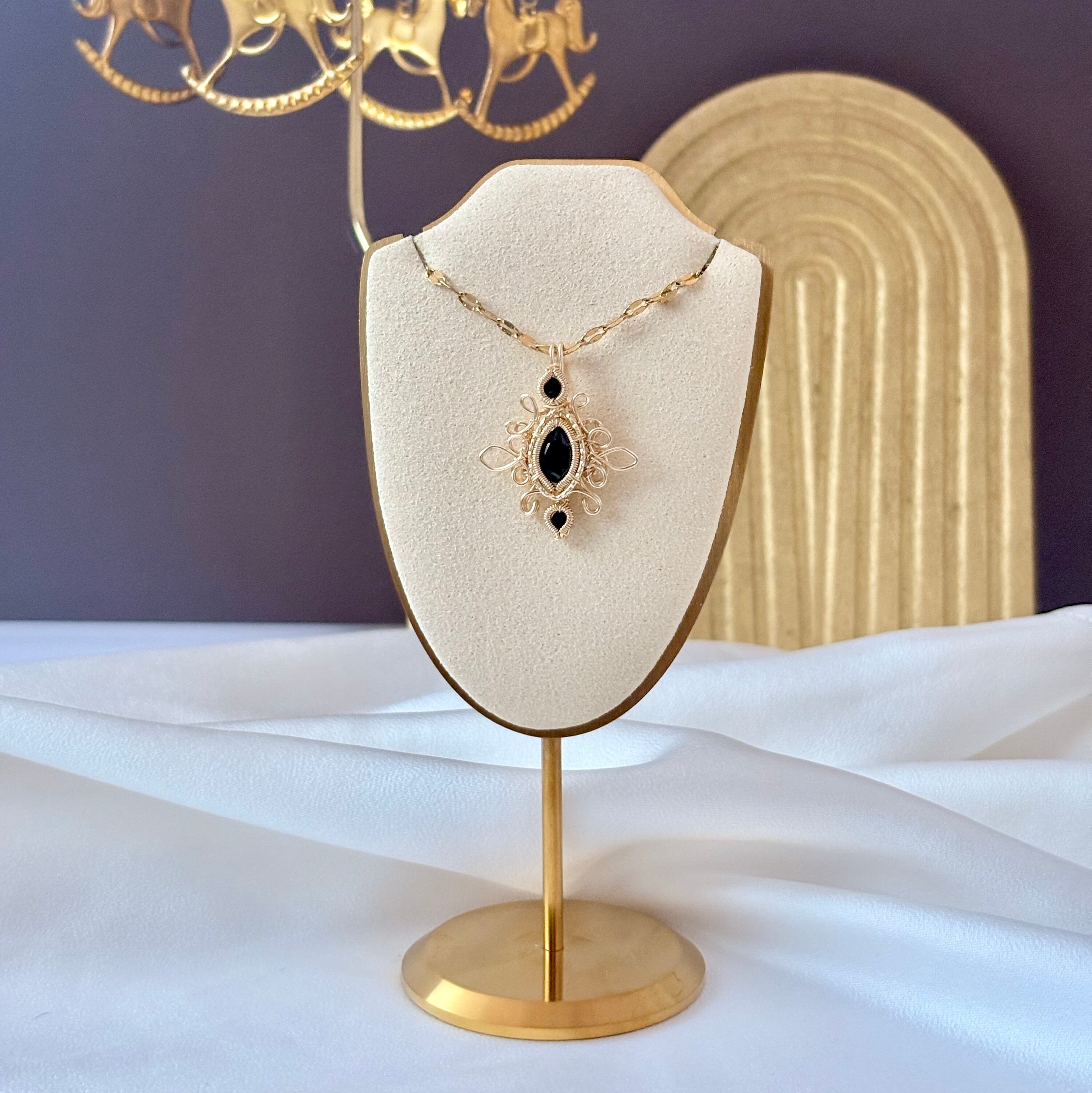 素材:ブラックスピネル(天然石)、スワロフスキー(ブラック)、ゴールドカラーワイヤー