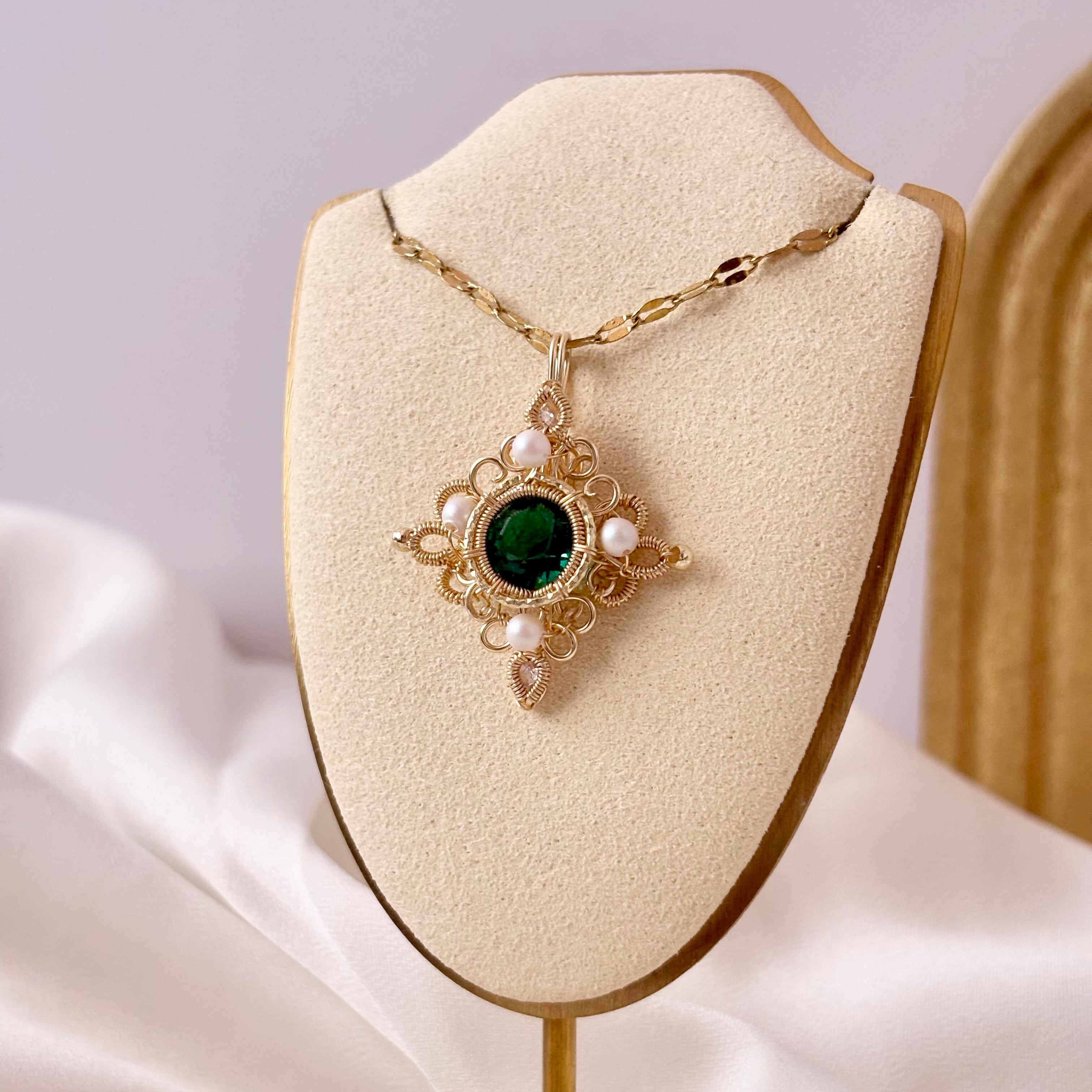エメラルド・サンクタ(ラボグロウンエメラルド)ワイヤージュエリー
